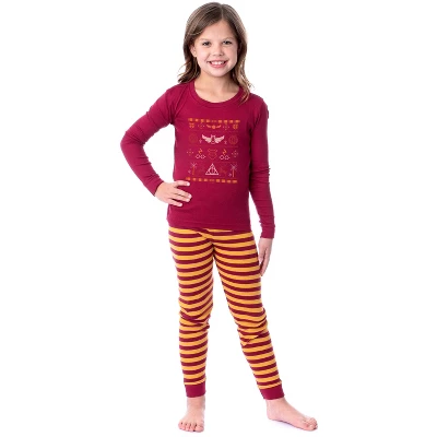 - CLASSIC DESIGN – This tight-fit pajama features various icons from the Wizarding World of Harry Potter series in a fun sweater style, including an owl, wands, a stag, the golden snitch, and many more!
