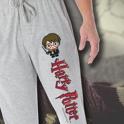 - PRINTED IN THE U.S.A – These adult Harry Potter pajama bottoms have a detailed print of a Chibi Harry Potter character wearing a Gryffindor house scarf and script logo on the left pant leg. The print is done on a top-quality machine in the USA!