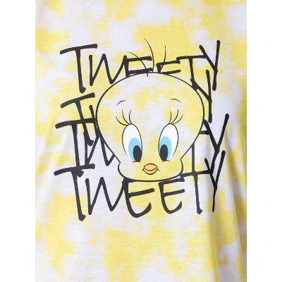 - CLASSIC CHARACTER DESIGN – This pajama set-top features Tweety’s face with the words “Tweety Tweety Tweety” behind him. The pajama shorts feature an allover print of his face as well.