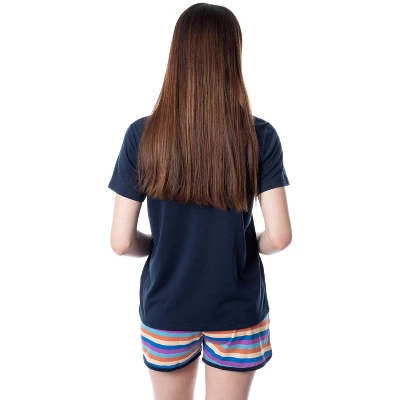 For over 60 years, NASA has inspired people young and old alike that the stars are the limit, literally! NASA or the National Aeronautics and Space Administration is the leading space exploration team in the world! With multiple legendary missions, including Apollo 11–the spaceflight that put humans on the moon! This pajama-top features a retro look of the NASA logo and a rocket amidst the stars. The shorts are a striped orange, yellow, blue, and purple. The pajama shorts contain an elastic waistband for every fan, and the whole pajama set is 100% Polyester Jersey.