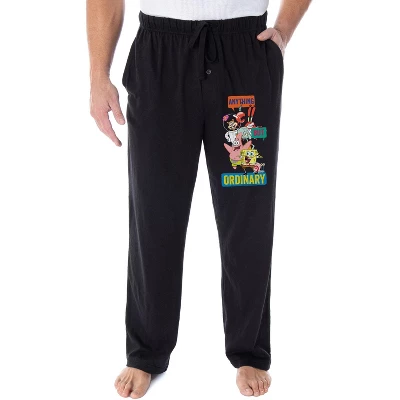 These are officially licensed SpongeBob SquarePants pajama pants! SpongeBob SquarePants is a popular cartoon series that aired on Nickelodeon and had a fun cast of characters. These SpongeBob pajama pants feature a large pattern of 7 characters from the cartoon, SpongeBob SquarePants, Patrick Starfish, Squidward, Plankton, Sandy Cheeks, Gary the Snail, and Mr. Krabs! this cartoon and these characters are anything but ordinary as the pants state! The pants feature a button fly, elastic stretch waistband, and 2 hand deep pockets! Perfect gift for fans of the all-time great cartoon series!