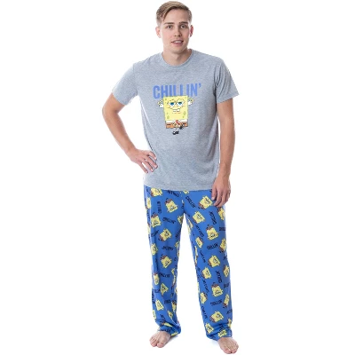- CLASSIC CHARACTER DESIGN – The pajama set-top features SpongeBob SquarePants with his legs crossed and the word ‘Chillin’ above him. The pants feature an all-over print of the same design!