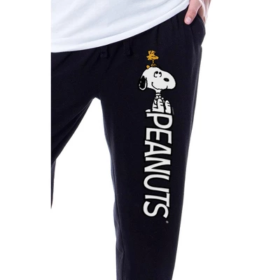 - DETAILED THEME – This Peanuts set-top features the two iconic characters known as Snoopy and Woodstock hanging out, with the words “All Smiles” above them. The jogger pajama pants feature them again, along with the Peanuts logo running down the leg.