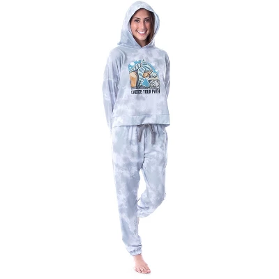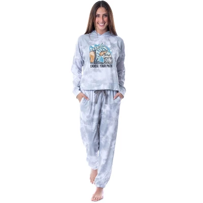 - THESE LET YOU LOUNGE AROUND IN COMFORT WITH GREAT FEATURES – This comfy soft jogger pajama set features Grogu and Ahsoka Tano on a grey tie dye background in an iconic moment of them speaking through the force with the caption “Choose Your Path.” The pants also have an extra long waist tie (so you won’t lose it in the wash). This hooded jogger pj set is both comfortable and functional, it is made of a polyester spandex blend that allows it to wear well but also be loose and comfortable. The top has a shortened oversized hoodie look with an extra soft hood and the the pants are joggers with two extra deep pockets hidden in the seam to carry your phone or keys. Any fan of Star Wars and The Mandalorian will love relaxing in this fun set
