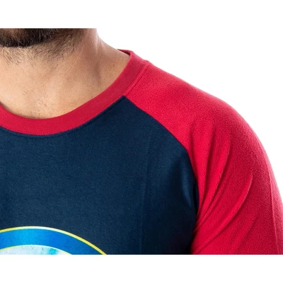 The Polar Express is the Christmas story about a doubting young boy who takes a journey on the Polar Express train to the north pole. Along the journey, the boy learns about bravery, friendship, and the spirit of Christmas. If you’re looking for officially licensed Polar Express merchandise, and Polar Express pajama sets in particular, then you’ve come to the right place! This men’s Polar Express pajama set comes with a long sleeve raglan top and matching pajama pants. The top features a detailed, high-quality print of fil’s poster design on front, The front is a navy blue while the sleeve, collar, and back of top our a contrasting red color. The sleep pants feature a great allover pattern of the same poster design as well as the golden Believe train ticket and snowflakes. Both the top and the bottom in the pajama set are made of an ultra-soft, fleecy smooth 100% polyester fabric blend.